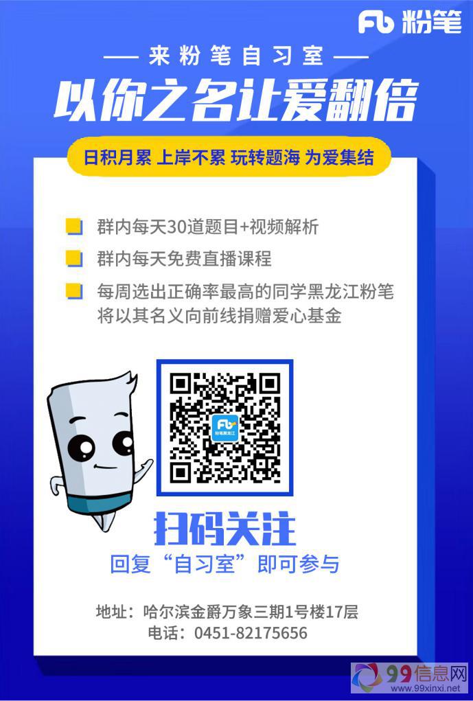 参与方式:关注“黑龙江粉笔”订阅号,回复:自习室,即可加入